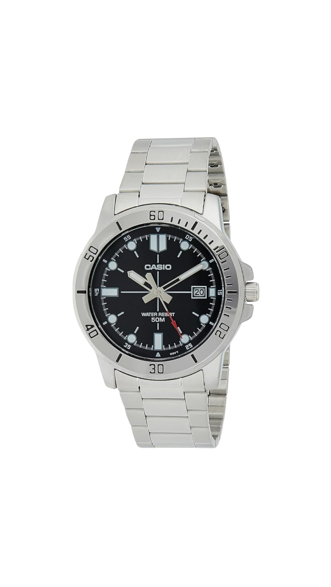 The Casio MTP-VD0 Series offers a clean, classic analog design with everyday functionality and durable construction. Featuring a polished stainless steel case and band, this series blends professional styling with casual versatility. The slim 10.3mm profile and comfortable wrist fit make it ideal for daily wear, whether dressed up or down.
