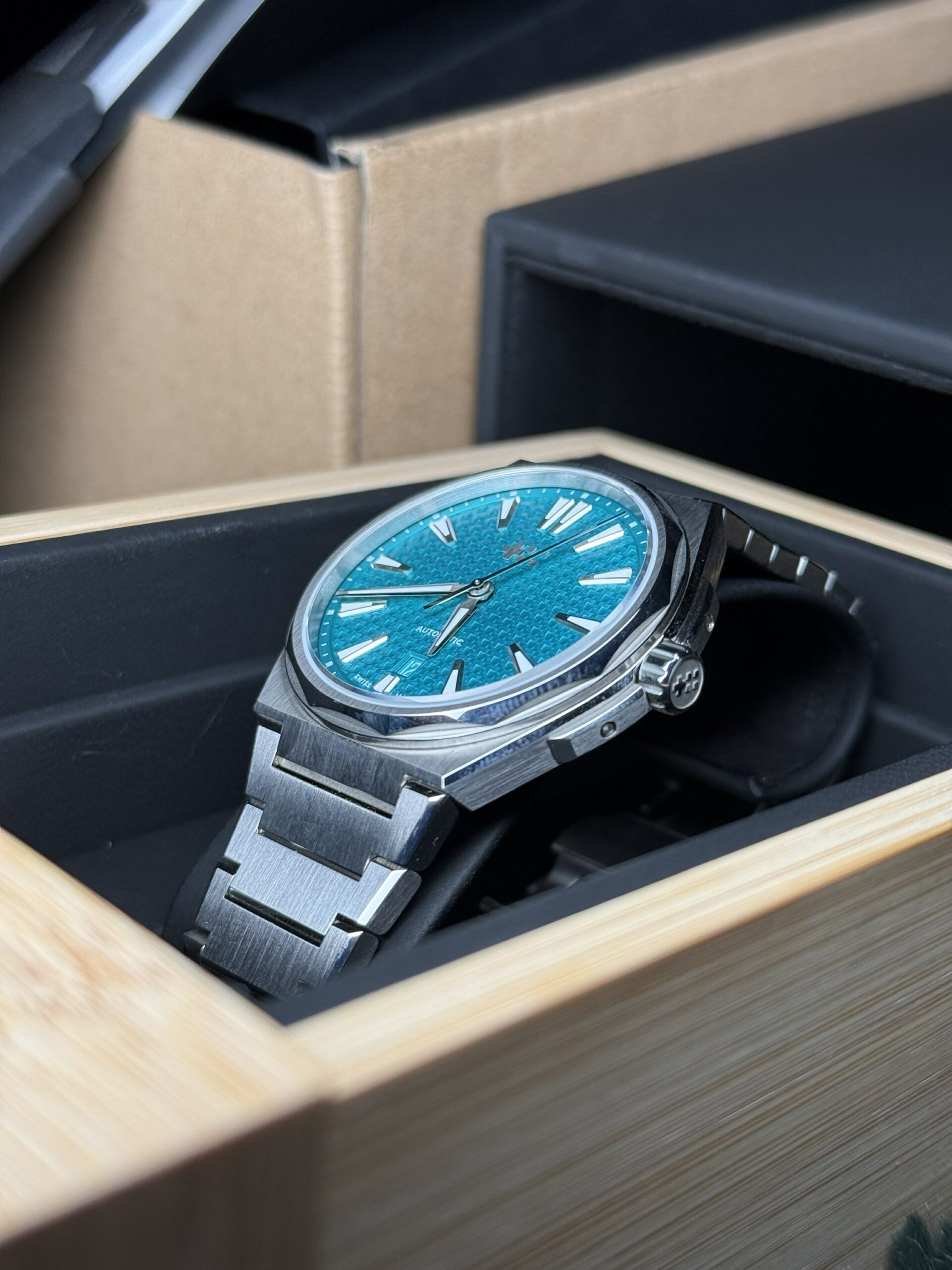 A modern icon in the making, the Christopher Ward The Twelve blends contemporary design with refined Swiss engineering. Featuring a striking Mineral Blue dial with a textured finish, this watch delivers a perfect balance between sporty presence and everyday elegance.