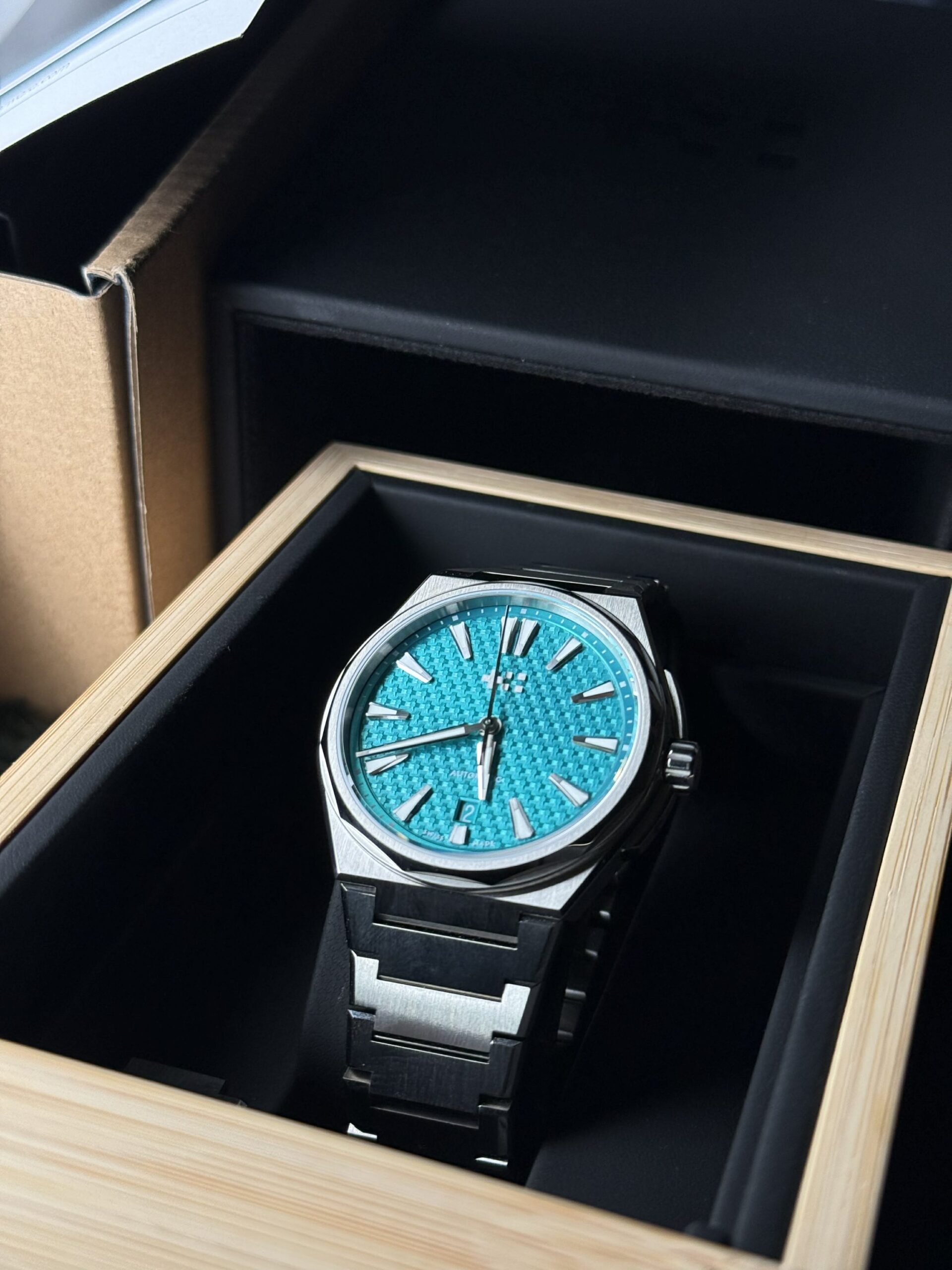 The distinctive dodecagonal bezel and integrated bracelet design give it a bold, architectural look inspired by high-end luxury sports watches—yet it remains incredibly wearable thanks to its slim profile and ergonomic construction.
