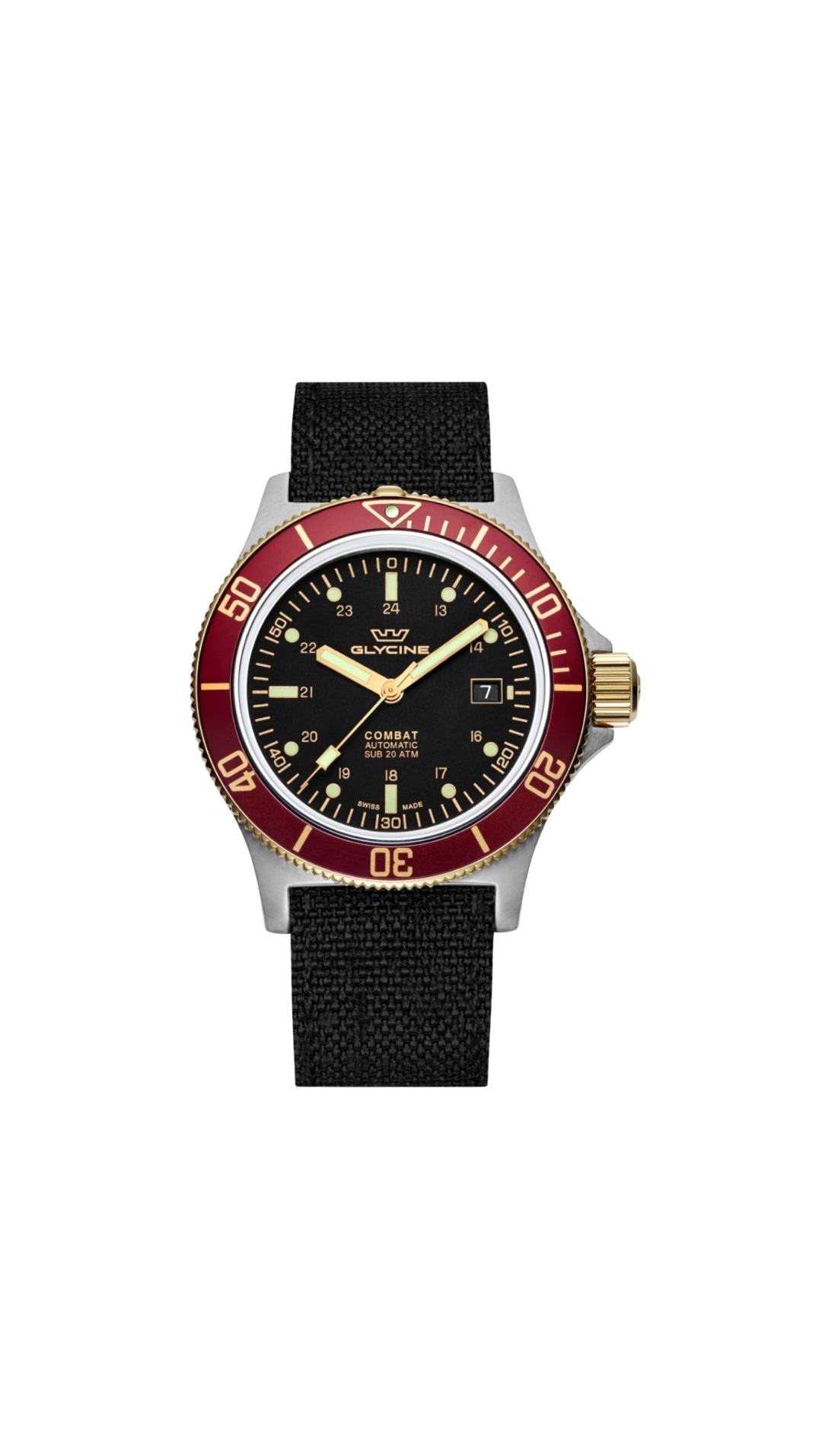 Inside, the Swiss automatic GL224 movement delivers dependable mechanical performance, paired with a practical date display at 3 o’clock. Completed by a lightweight black nylon strap, the Combat Sub offers a sporty feel on the wrist and everyday versatility — a true no-nonsense diver designed to be worn and enjoyed.
