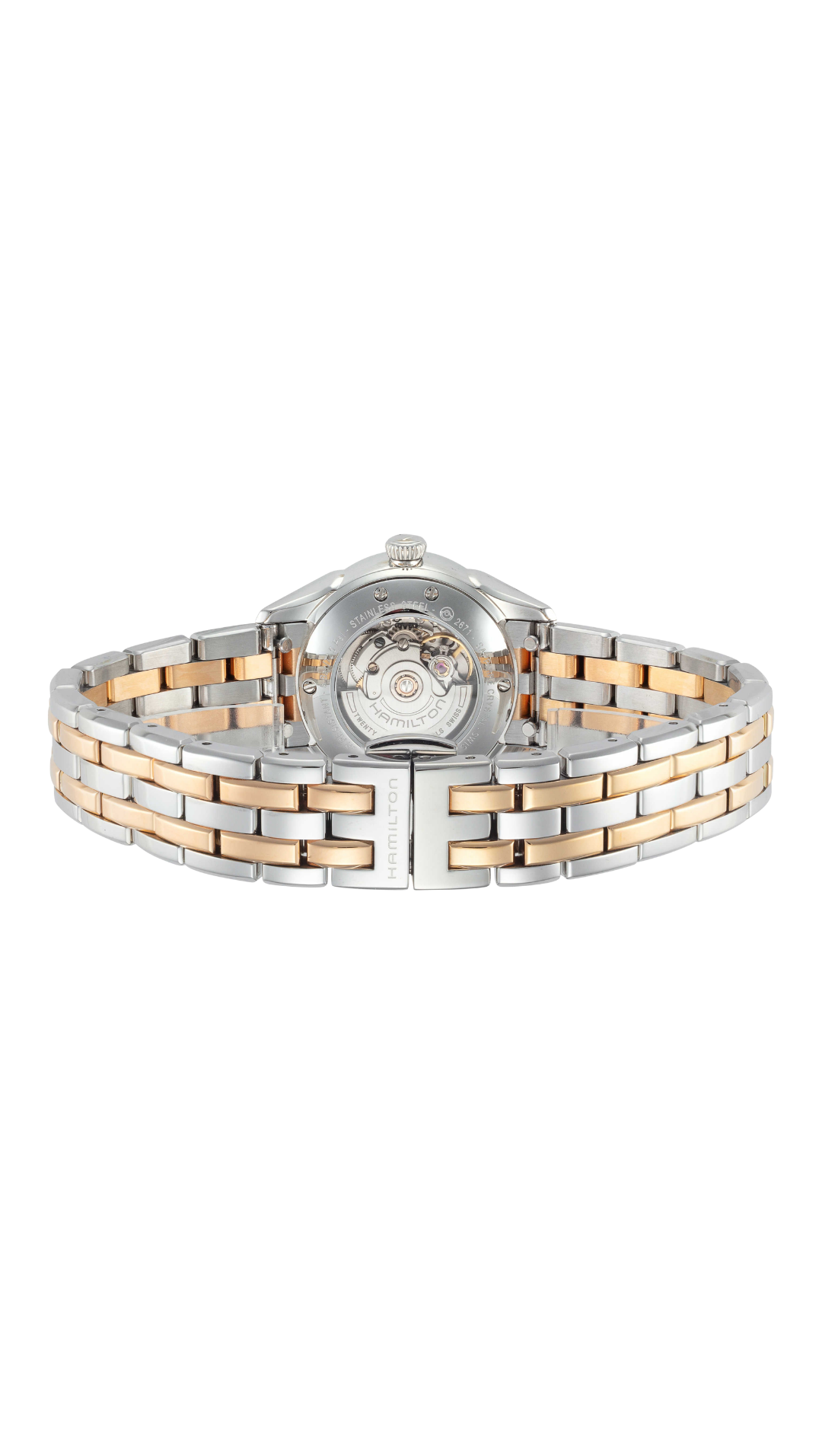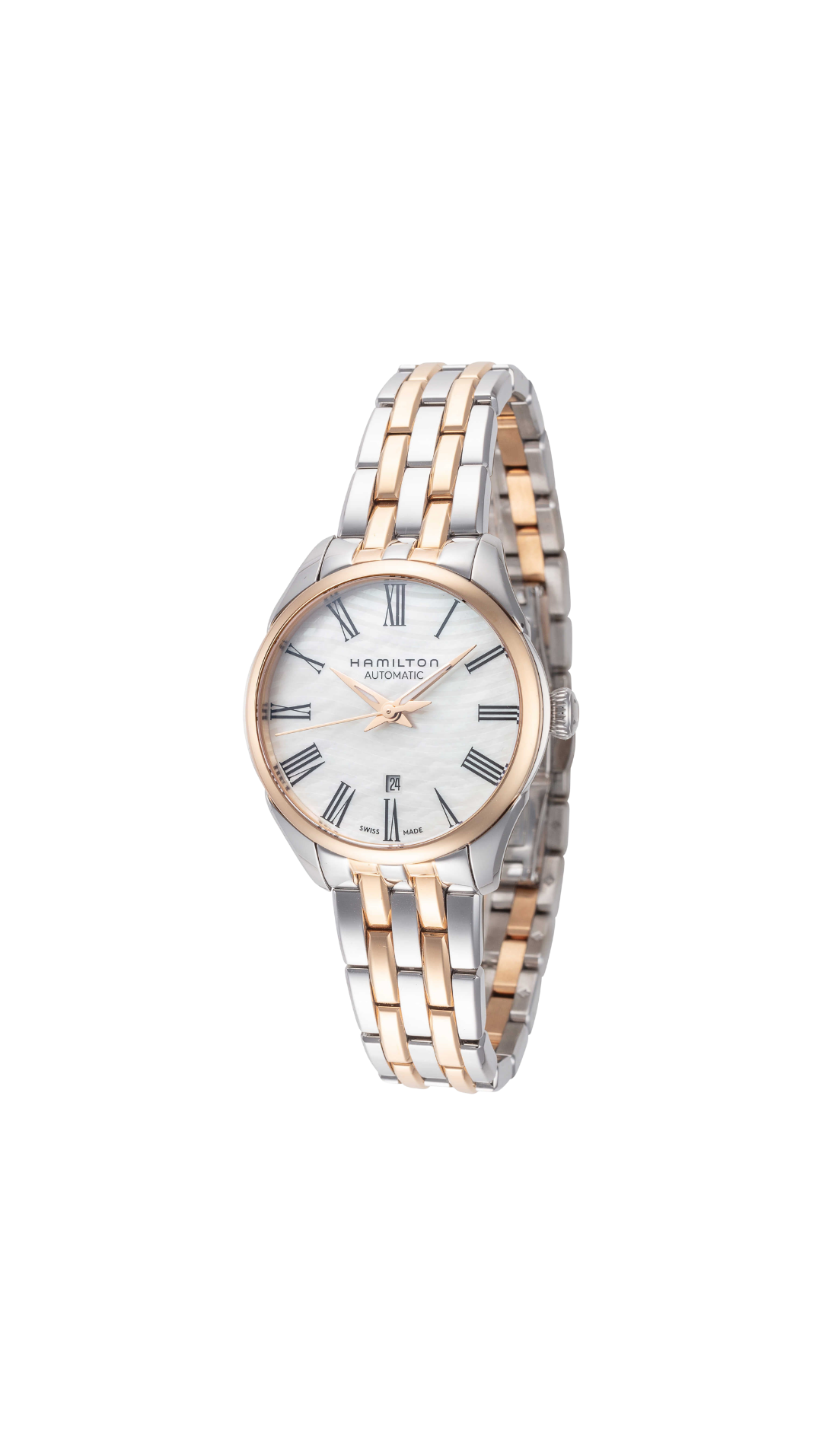 The Hamilton Jazzmaster Automatic Mother-of-Pearl Dial Women’s Watch (H42225191) is a beautifully refined timepiece that blends Swiss mechanical craftsmanship with elegant design. Part of Hamilton’s sophisticated Jazzmaster collection, this watch is designed for women who appreciate classic style paired with reliable automatic performance.