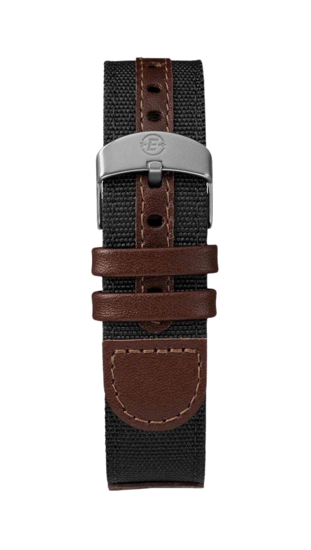 - Adjustable black & brown 20 millimeter genuine leather and fabric strap fits up to 8-inch wrist circumference