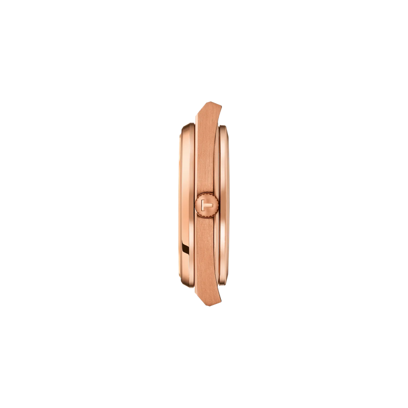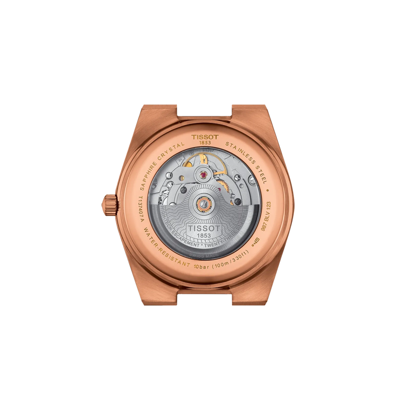 The Tissot PRX 40mm Powermatic 80 in rose gold PVD is a sophisticated blend of vintage inspiration and modern Swiss engineering. Featuring a slim, round 316L stainless steel case with rose gold PVD coating and an integrated bracelet, it captures the authentic ‘70s aesthetic while offering contemporary refinement. Powered by the self-winding Powermatic 80 movement with an innovative Nivachron™ balance spring, this watch provides up to 80 hours of power reserve, delivering precision and reliability for busy lifestyles. The striking blue dial, highlighted by luminous hands with Super-LumiNova®, ensures readability in any light, while the see-through caseback showcases the mechanical movement in action. With an interchangeable bracelet featuring a butterfly clasp with push-buttons, the PRX Powermatic 80 Rose Gold is a timeless statement piece for those who value heritage design, technical innovation, and everyday elegance.
