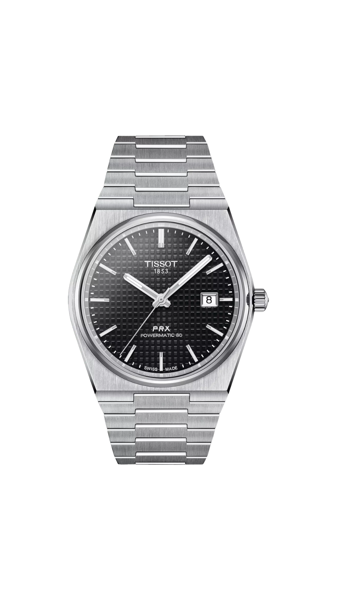 The Tissot PRX Powermatic 80 (T137.407.11.051.00) is a modern icon that captures the unmistakable spirit of 1970s design while delivering cutting-edge Swiss mechanical performance. Its slim, angular tonneau-shaped 316L stainless steel case stays true to the original 1978 PRX silhouette, offering a sleek and confident wrist presence. The deep black dial is clean and highly legible, enhanced by applied indexes and Super-LumiNova® hands for visibility in low-light conditions. At its core beats the self-winding Powermatic 80 automatic movement, featuring an innovative Nivachron balance spring and an impressive 80-hour power reserve, making it ideal for modern, active lifestyles. Finished with an integrated stainless steel bracelet and a see-through caseback, the PRX Powermatic 80 blends heritage aesthetics with contemporary Swiss engineering.