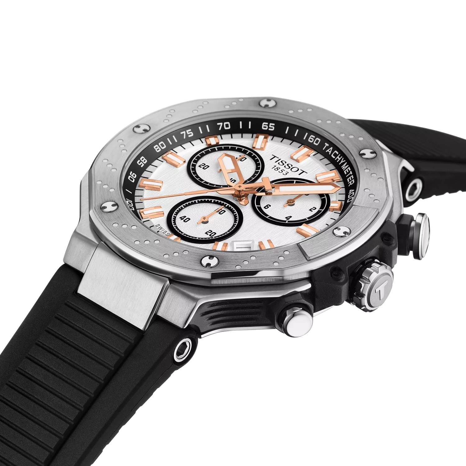 With its black silicone strap for comfort and durability, the T-Race Chronograph is the watch of choice for riders, racers, and anyone who lives life in the fast lane.