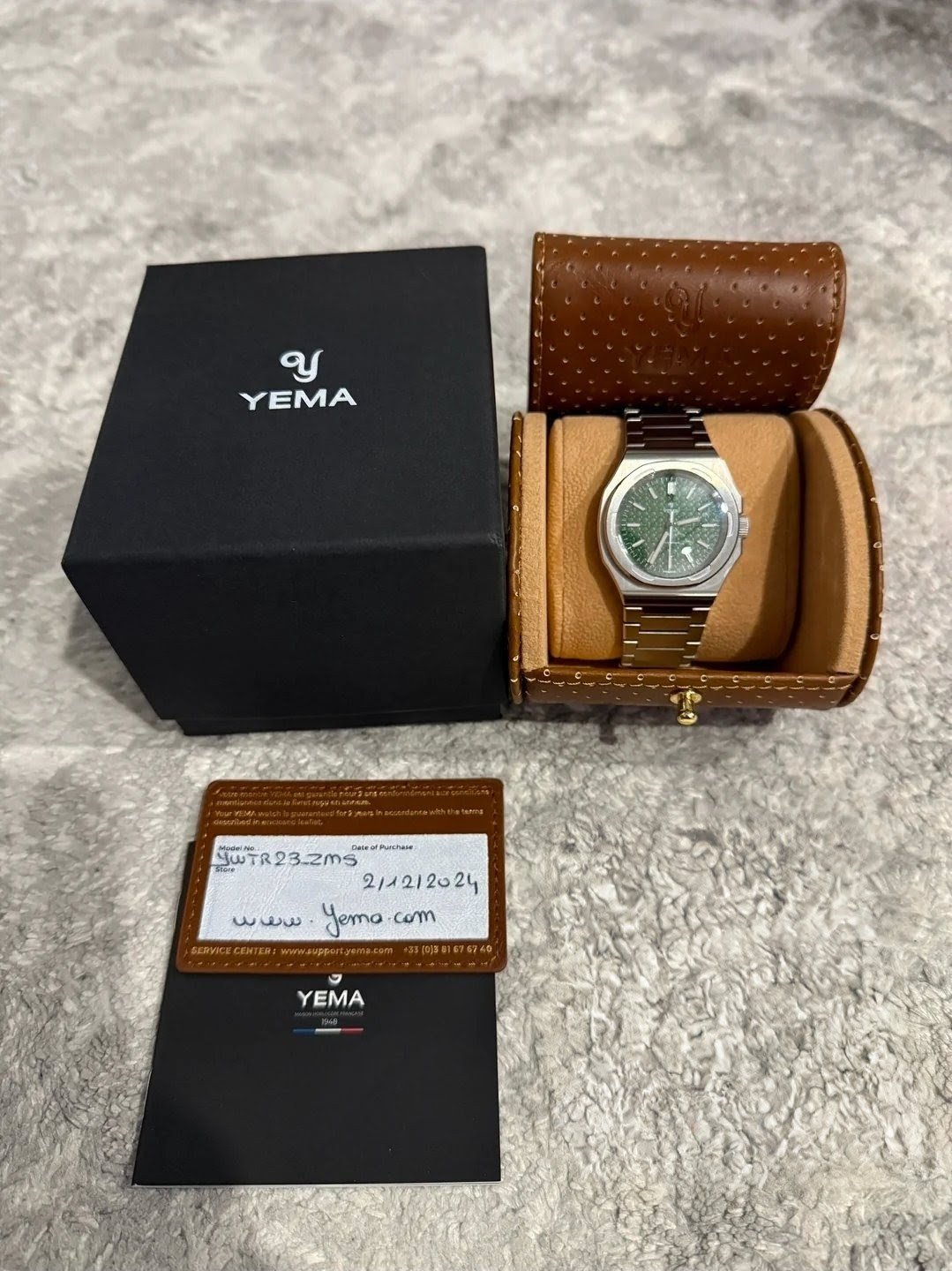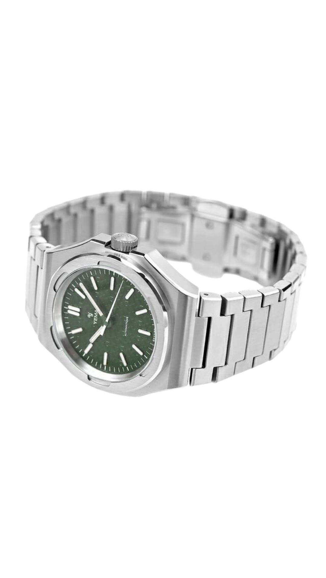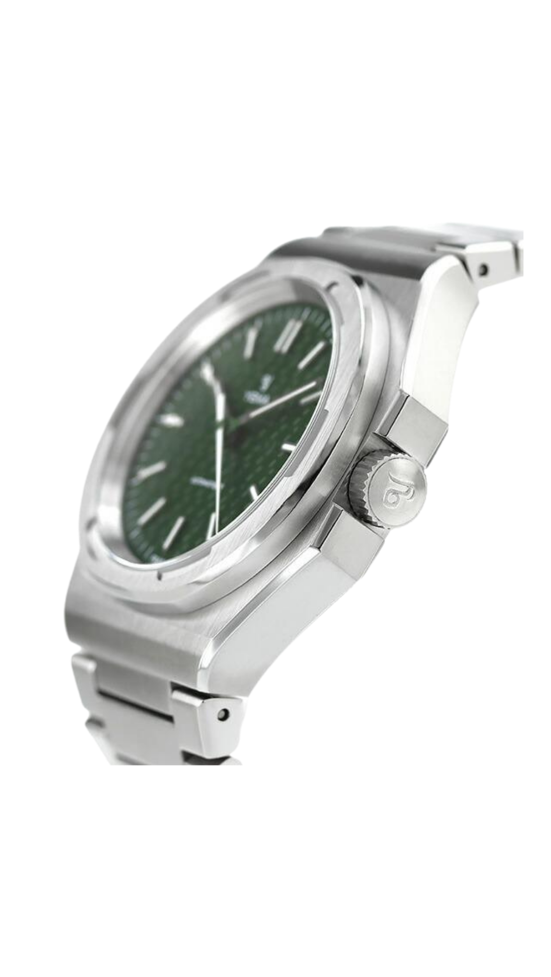 The Yema Urban Traveller is a modern interpretation of a sporty everyday timepiece, blending refined finishing with a bold, contemporary design. Its textured green dial adds depth and character, perfectly complemented by polished stainless steel accents and an integrated bracelet for a seamless, streamlined look. Designed for versatility, this watch transitions effortlessly from casual wear to more elevated settings. Built with durable materials, sapphire crystal, and reliable construction, the Urban Traveller delivers both style and everyday practicality in a well-balanced 39mm case.